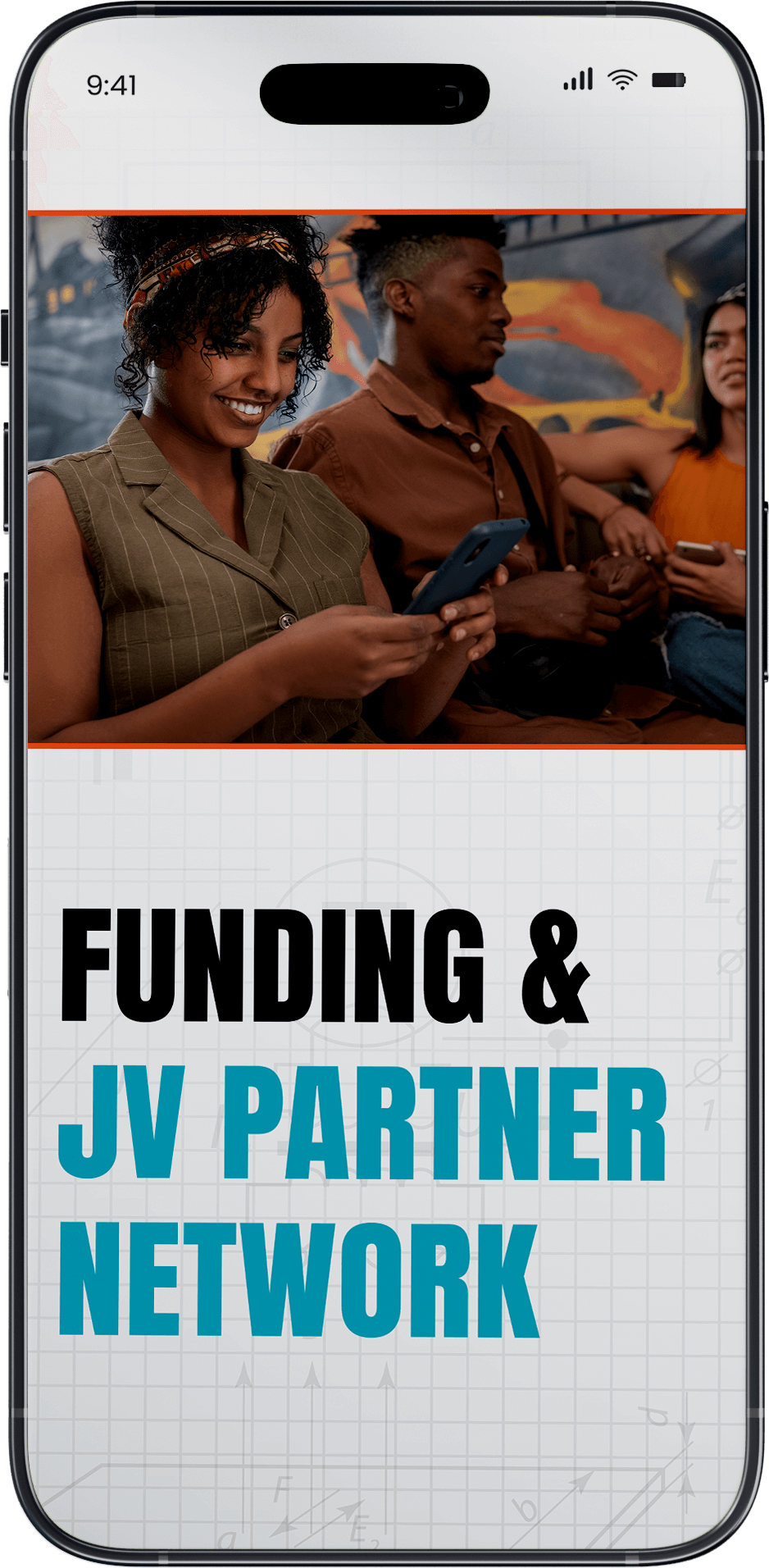 Don’t let money or buyers stop you. Tap into our private list of nationwide funding partners for flips. Also, Use our JV partner network — submit your deal, we’ll help you find a buyer and split the profit.