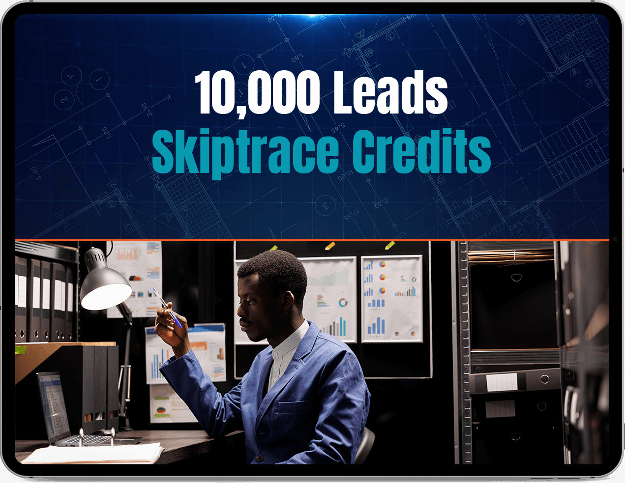 Jumpstart your hustle with real seller data. We’ll load your account with 10,000 skip tracing credits so you can instantly get phone numbers and start marketing to motivated sellers — no waiting, no guessing.
